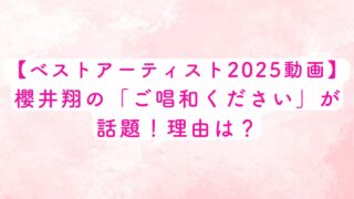 2025年11月29日(土)に放送した「ベストアーティスト2025」でSnowManが嵐の「Happiness」を披露しました。話題となったのは、曲の途中で櫻井翔さんがステージへ連れられ「ご唱和ください」の場面です。櫻井翔さんの話題になった...